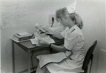 Student nurse, Heather Trousdale, at Eliza Coffee Memorial Hospital taking notes.