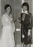 Joni James, Student Nurses' Association (SNA) President, passes the gavel to Louise Burnett at awards ceremony.