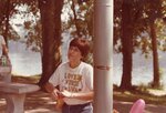 Outdoor photograph of a student in "Love a Nurse at UNA" t-shirt.