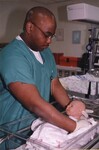 University of North Alabama nursing student in simulated neonatal unit with infant model.