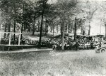 The simple stage seen here was built as a raised platform, semicircular in shape, using unpainted pine planks. The back of the stage consisted of eight columns connected by one long plank at the top. Built in 1919 and used that year for the Centennial celebration of Alabama's statehood.