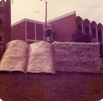 Homecoming decoration created in 1975 by the Foreign Language Clubs of the University of North Alabama depicting a book that reads "welcome" in English, Spanish, French, and German.