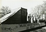 1976 University of North Alabama Homecoming Parade float with "Music Makes the Shoals Go 'Round'" theme.