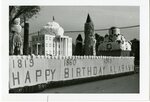 1969 Florence State University Homecoming Parade float featuring a "Happy Birthday Alabama" motif in honor of the 150th year of Alabama's statehood.