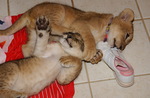 Brother and sister lion cubs, Leo III and Una were born November 18, 2002, at a wildlife park in New Hampshire. They were acquired from Greenville Wildlife Park December 30, 2002, at 6 weeks old. They weighed 10 and 11 pounds.